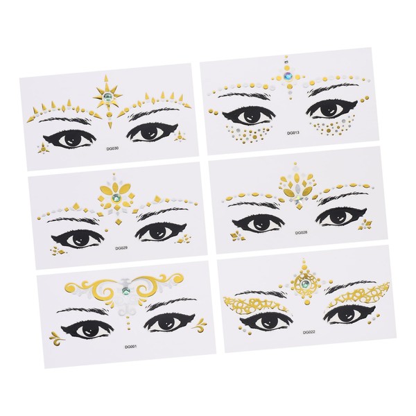 TOVINANNA 6sheets Face Stickers for Day Peel Stick Eye Makeup Decals for Cosplay Festivals and Parties Random Designs Included