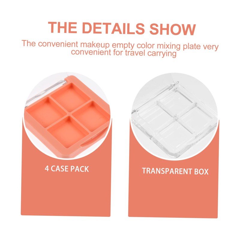 - This is a very convenient and portable eyeshadow plate with 4 grids that means you can place 4 colors in it Eye Shadow Case.