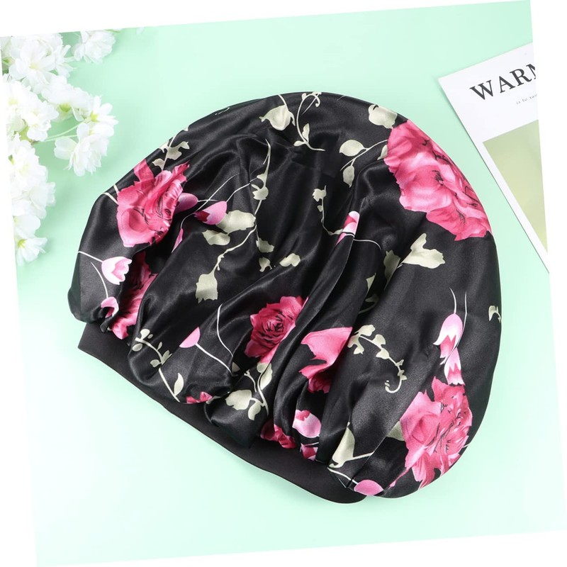 TOVINANNA Large Size Satin Sleep Cap Salon Sleep Cap Elastic Wide Brim Silk Hair Bonnet for Shower Home Use