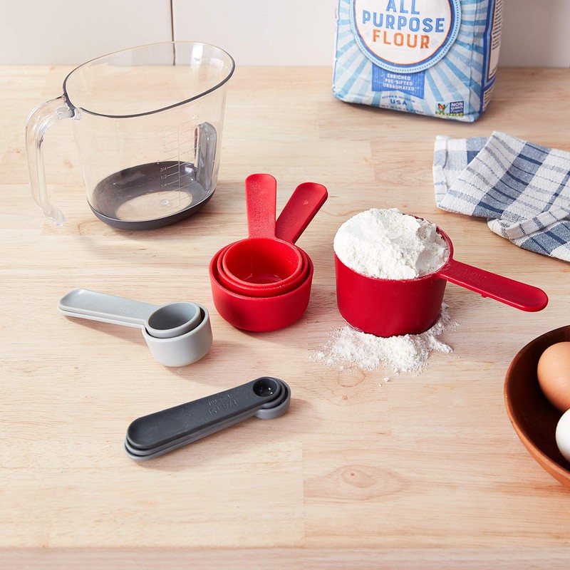 Tovolo Magnetic Nested System Cups & Spoons for Wet and Dry Ingredients, Cup Baking Set, Measuring Spoons & Cups for Cooking, Dishwasher-Safe & BPA-Free, Assorted Red/Gray