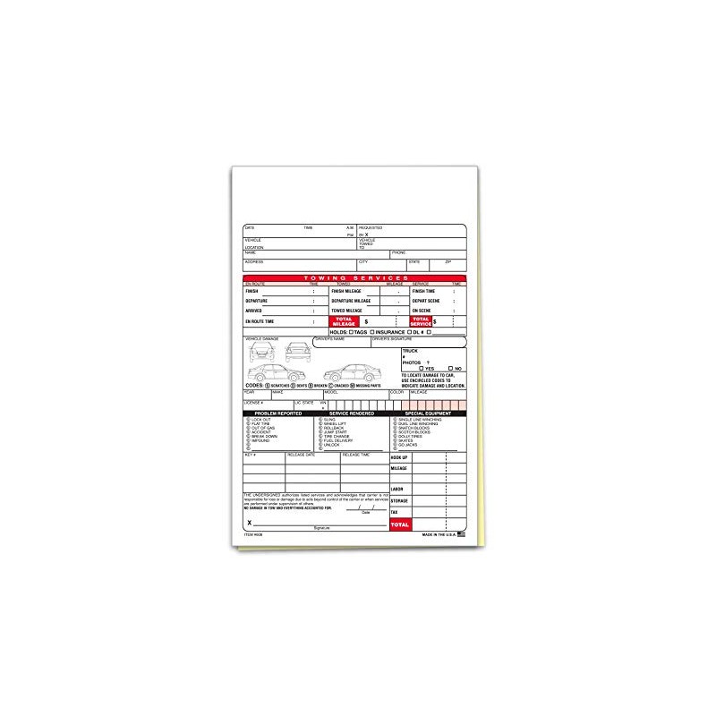 Tow Truck Register Small 5 1/2" x 8 1/2" Forms Road Service Work Orders 2-Part Duplicate Invoices 100 Pack Milage Service