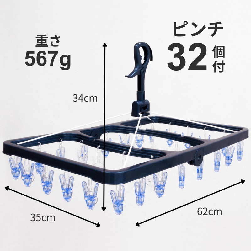Towa Sangyo CLR Laundry Hanger, Foldable, Corner Hanger, Polycarbonate, Includes 32 Pinches