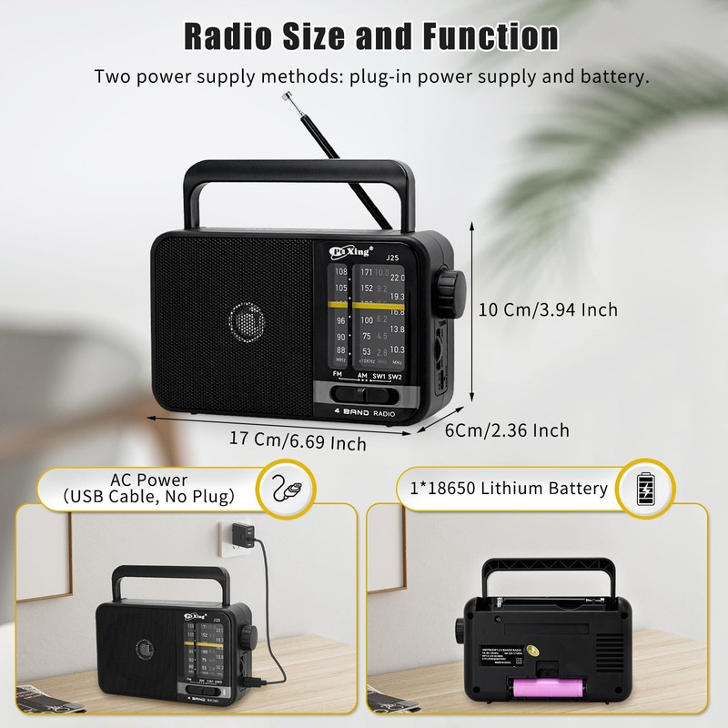 TOWEAR Tragbares FM AM Radio, Netz- und Batterieradio für zu Hause oder im Fr...