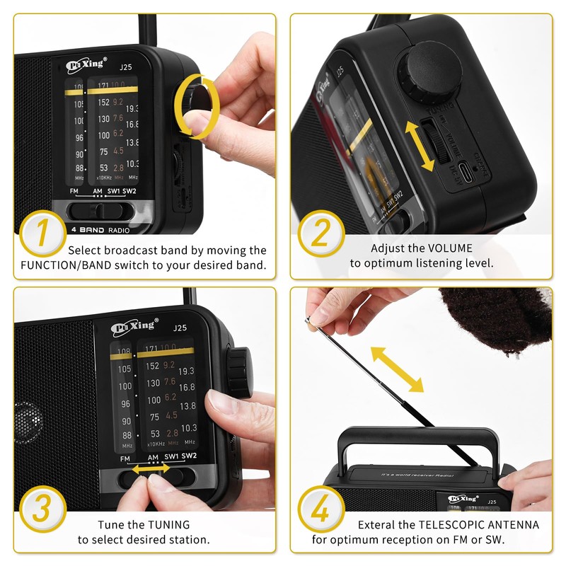 TOWEAR Tragbares FM AM Radio, Netz- und Batterieradio für zu Hause oder im Freien, kleine Tasche mit ausgezeichnetem Empfang, für ältere Menschen, einfach zu bedienen, schwarz