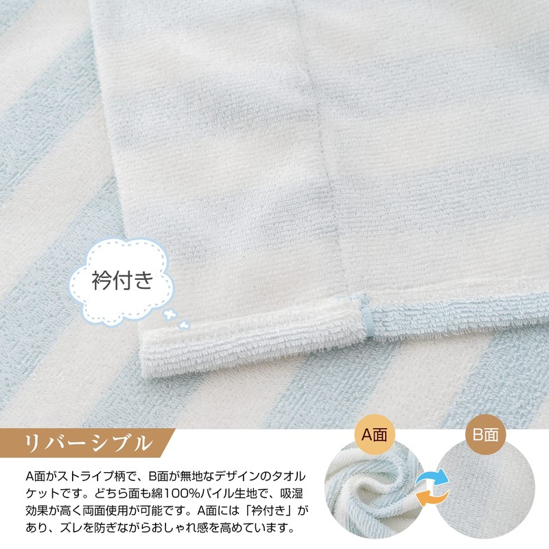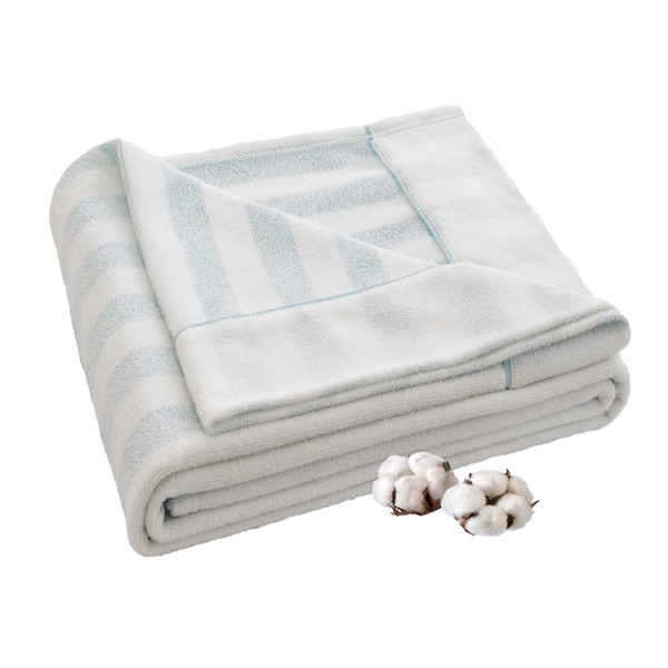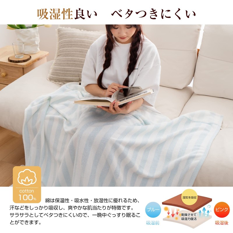 - (Moisture Absorbent, Breathable and Reversable) This towel blanket is made with a gentle texture that can be used on both sides. The pile is made of 100% cotton and has good water absorbency, so it absorbs sweat and moisture while you sleep. Smooth and firm volume and breathability. Both sides are different styles. A side has a striped pattern (with collar) and B side is white plain terry cloth. The simple style is perfect for both Japanese and Western rooms. Choose your favorite side according to your preference. Because it is necessary to paste both sides, the special processing may be a little hard, but the fluffiness will come back after the first wash