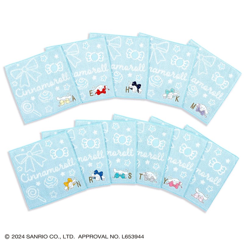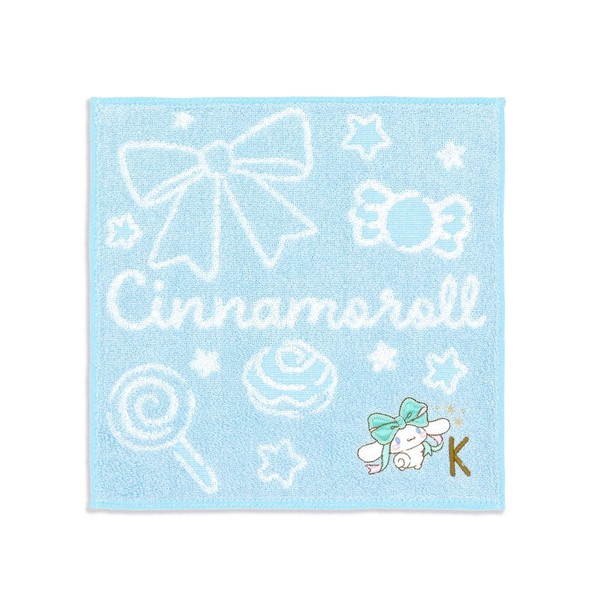Towel Museum Sanrio Big Ribbon Cinnamon Roll Towel Handkerchief BK Blue Initial K 28-2030070 Approx. 9.8 x 9.8 inches (25 x 25 cm)