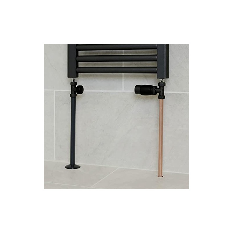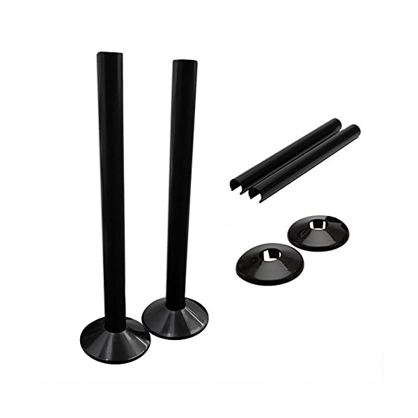 Towel Rail Radiator Pipe Covers & Collars in Black, White, Chrome & Anthracite *Just Snap It* (200mm Black Pipe Covers and Collars)