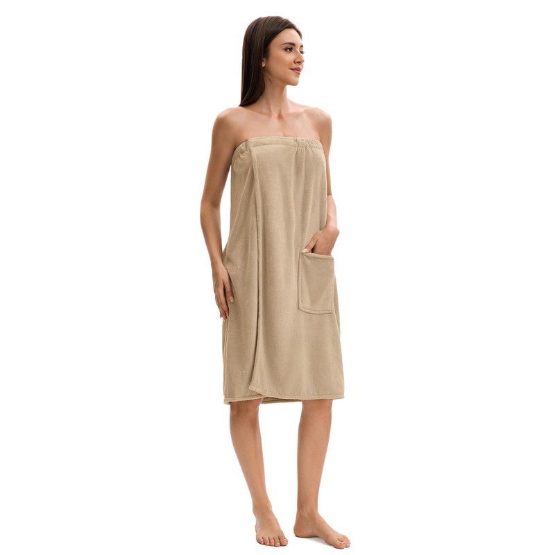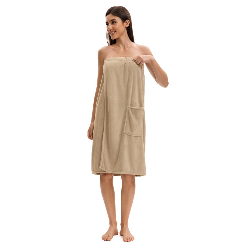 Towel Wrap For Women After Shower,Plush Bath Robe Female,Sauna Spa Wrap Around Towels With Pockets (US, Alpha, One Size, Regular, Regular, Khaki)