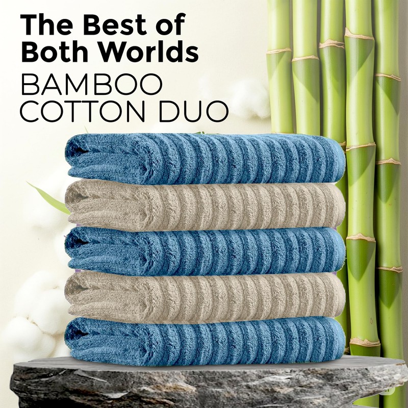 Towelogy® Luxurious Ribbed Bath Sheets Set of 2 | 60% Bamboo & 40% Cotton Blend | Ultra Soft & Absorbent | Large 140 x 90cm | Premium Multi Coloured Bath Towel Set (Serene Combo)