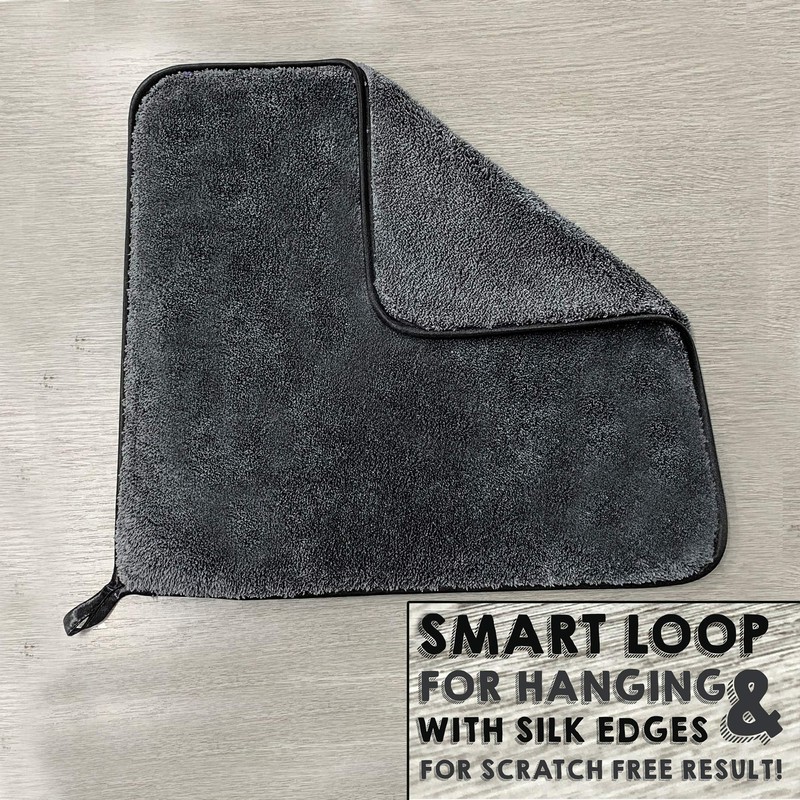 Towelogy® Microfibre Car Cloths 1200GSM High Density Dual Power Auto Detailing Towels 40x40cm (Grey (Black Edges), Pack Of 1)