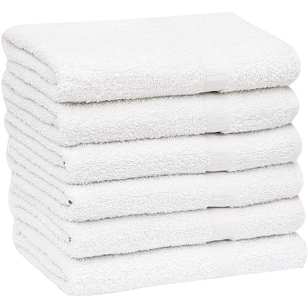 Towels N More 6 Pack White Bath Towel (24x48 Inch) Cotton Blend Extra Absorbent Easy Care-Home, spa, Resort, Hotels/Motels, Gym use (6)