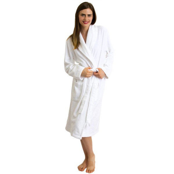 TowelSelections Womens Plush Bathrobe 100% Cotton Luxury Terry Shawl Bath Robe Large/X-Large Brilliant White
