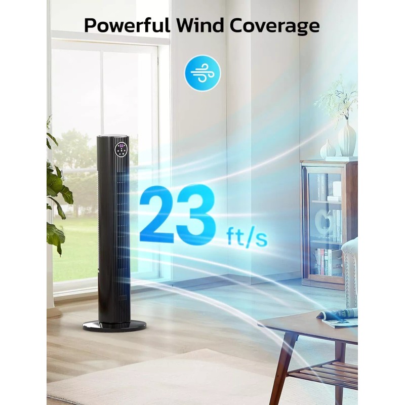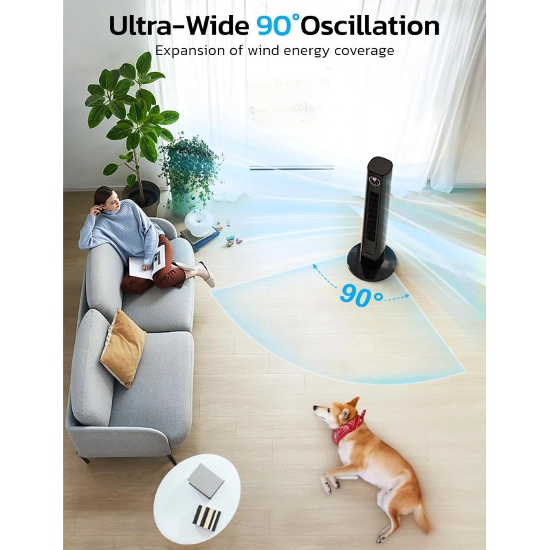 • 【Ultra-Wide 90° Oscillation】The unique 90-degree enhanced oscillation design of this tower fan effectively expands the air delivery area to ensure that the entire room can enjoy even and smooth breeze, the standing fan is capable of delivering coolness to every corner of the room.