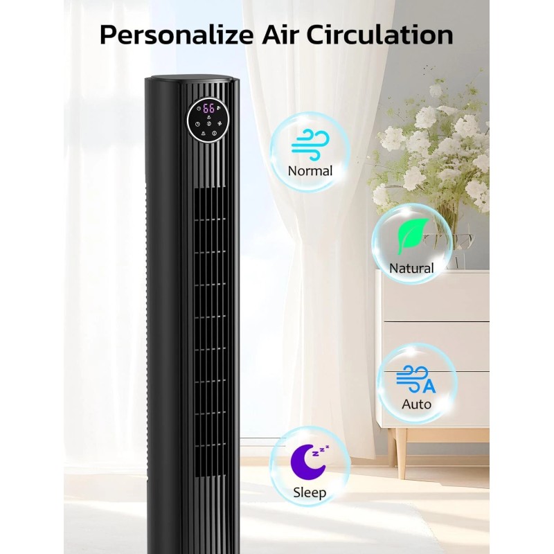 • 【12H Timer & Sleep Mode】Compared to the 7-hour timer on the market, our tower fan has a built-in 12-hour precision timer, with a thoughtful sleep mode that automatically adjusts the wind power according to individual work and rest, making nighttime use both energy-efficient and reassuring, and accompanying you to have a good night's sleep.