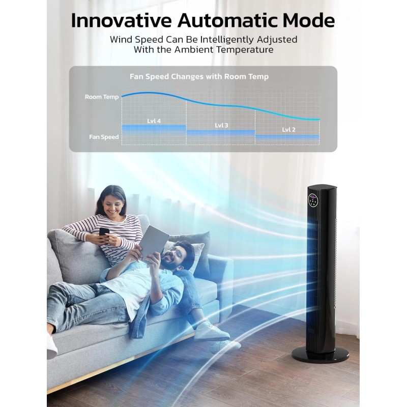 • 【Multiple Wind Options】Despite having a compact 37” appearance that doesn't take up much space, tower fan for bedroom still combines 4 modes in one, ranging from the basic normal mode and natural mode to the specially designed sleep mode and automatic temperature control mode, each of which is designed to provide a comfortable and energy-saving experience.