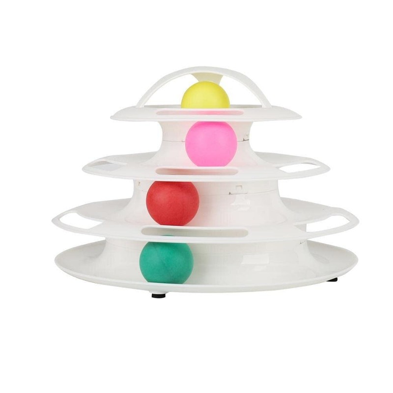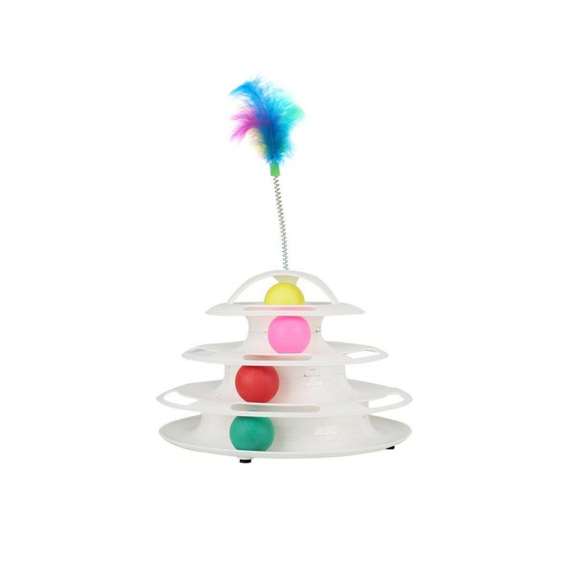 Tower of Tracks 4 Katlı Tüylü Yuvarlak Kedi Oyuncağı 24 x 13 Cm Beyaz