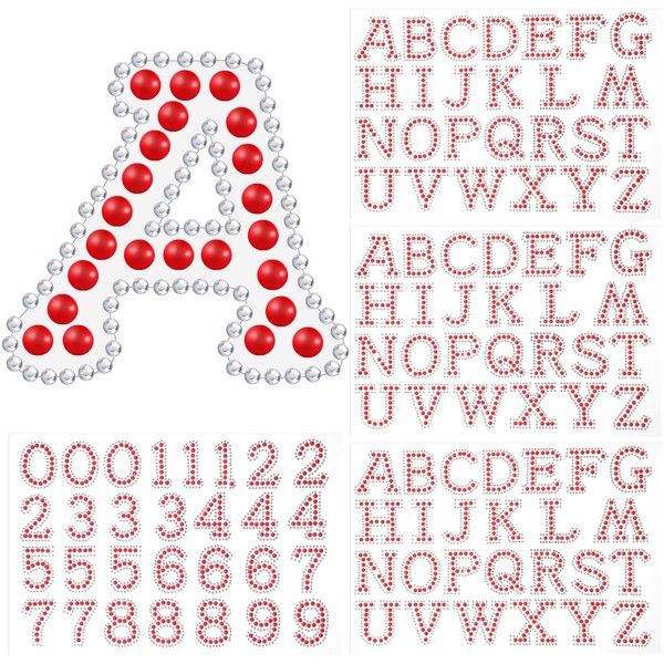 Towfed 107 Pcs 4 Sheets Pearl Self Adhesive Stickers 3 Sheets A-Z Glitter Rhinestone Letter Stickers and 1 Sheet 0-9 Glitter Number Stickers Bling Crystal Alphabet Sticker for DIY Crafts (Red+White)