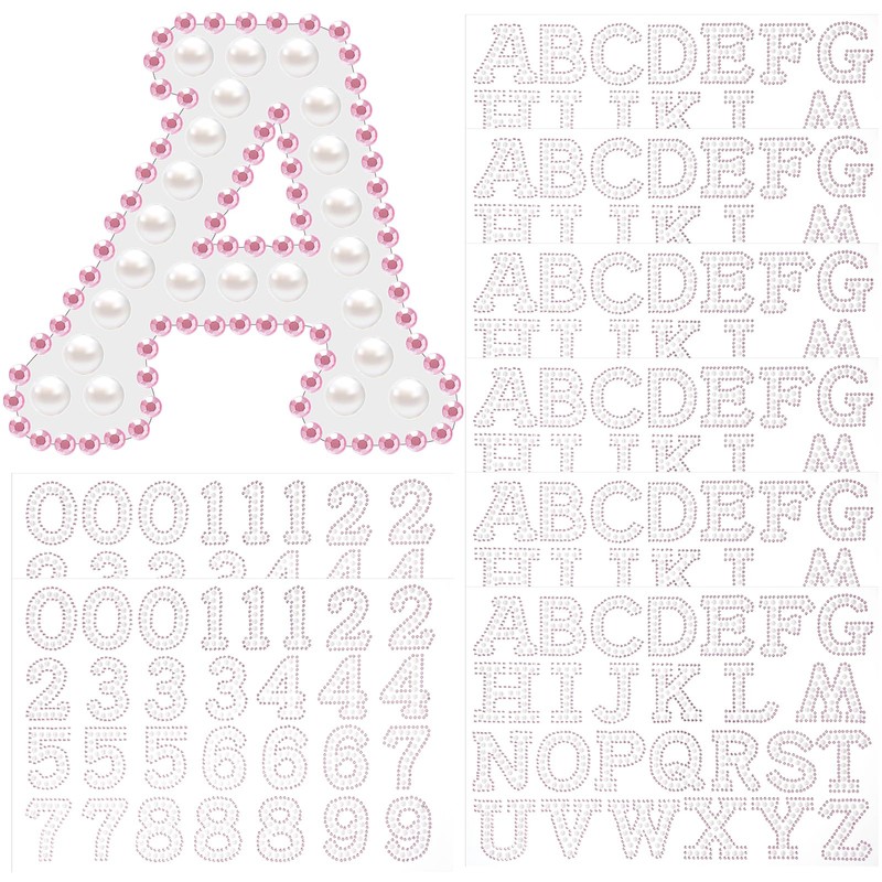 Towfed 214 Pcs 8 Sheets Pearl Self Adhesive Stickers 6 Sheets A-Z Glitter Rhinestone Letter Stickers and 2 Sheet 0-9 Glitter Number Stickers Bling Crystal Alphabet Sticker for DIY Crafts (White+Pink)