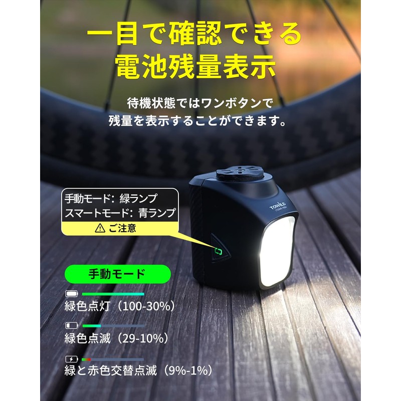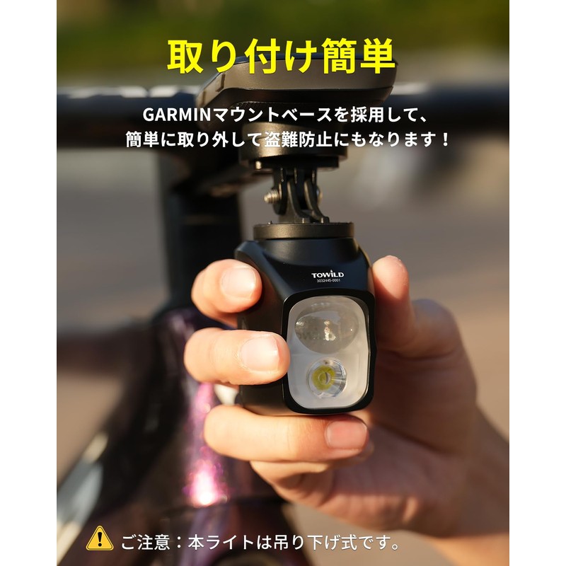 TOWILD DL1700 Bicycle Light, For Hanging Only, High Beam & Low Beam, Remote Control, Road Bike Light, Large Capacity, 4,000 mAh, 1,700 Lumens, USB-C Rechargeable, Road Bike Light, Automatic Lighting,