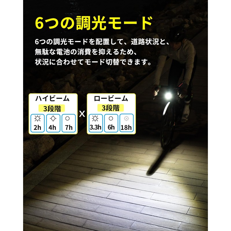 - 4,000 mAh Large Capacity & TYPE-C Rechargeable Bi-Directional: This 4,000 mAh large capacity bicycle light can be used continuously for up to 18 hours (low beam mode). The bicycle light is conveniently USB-C rechargeable, so it can be fully charged in about 4 hours. In addition, it can also be used as an emergency backup power source for outdoor use, and can also be used to charge your smartphone or tablet. This bicycle light is perfect for outdoor activities
