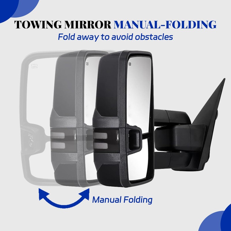 - Easy Installation: Towing mirrors designed for straightforward installation, compatible with existing wiring harnesses and mounting points, making it suitable for DIY enthusiasts or professional installation of towing mirrors