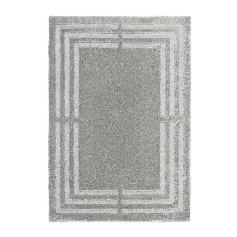 TOWN & COUNTRY EVERYDAY Cloud Shag Plush Border Area Rug with High-Low Pile, Grey, 6'6"x9'6"
