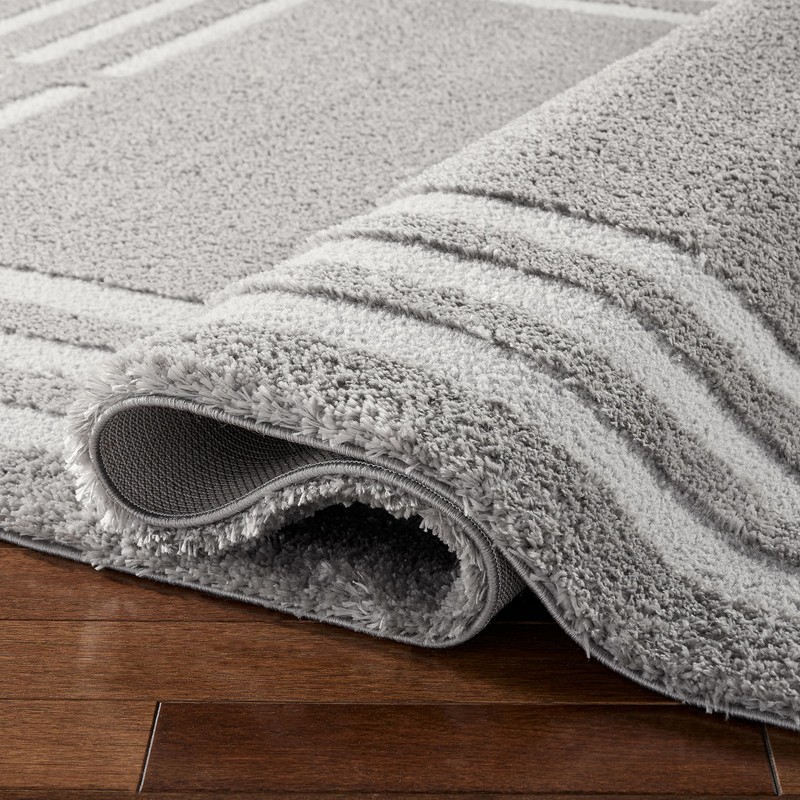 TOWN & COUNTRY EVERYDAY Cloud Shag Plush Border Area Rug with High-Low Pile, Grey, 6'6"x9'6"