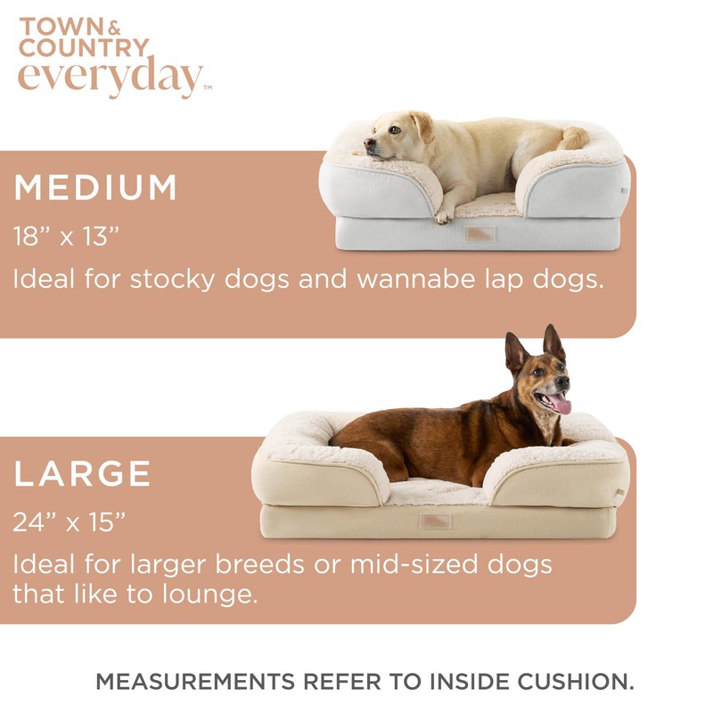 TOWN & COUNTRY EVERYDAY CuddleTown Comfy Solid Bolster Sofa Pet Bed, Supporti...