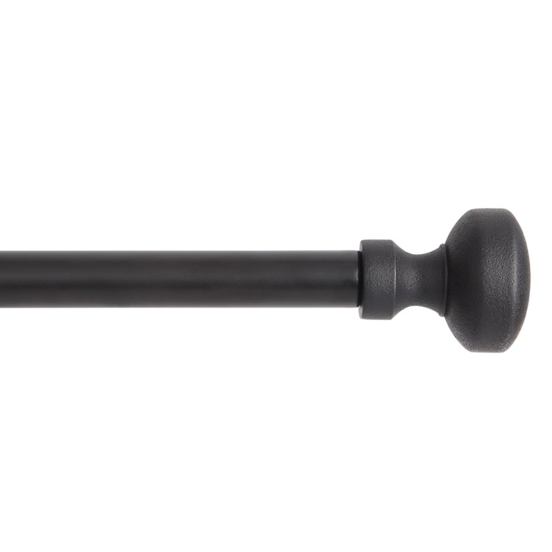 TOWN & COUNTRY EVERYDAY Modern Rounded Cap Single Indoor Curtain Rod and Finial Set, Easy Install Wall Mount, Matte Black, Adjustable 66”-120”
