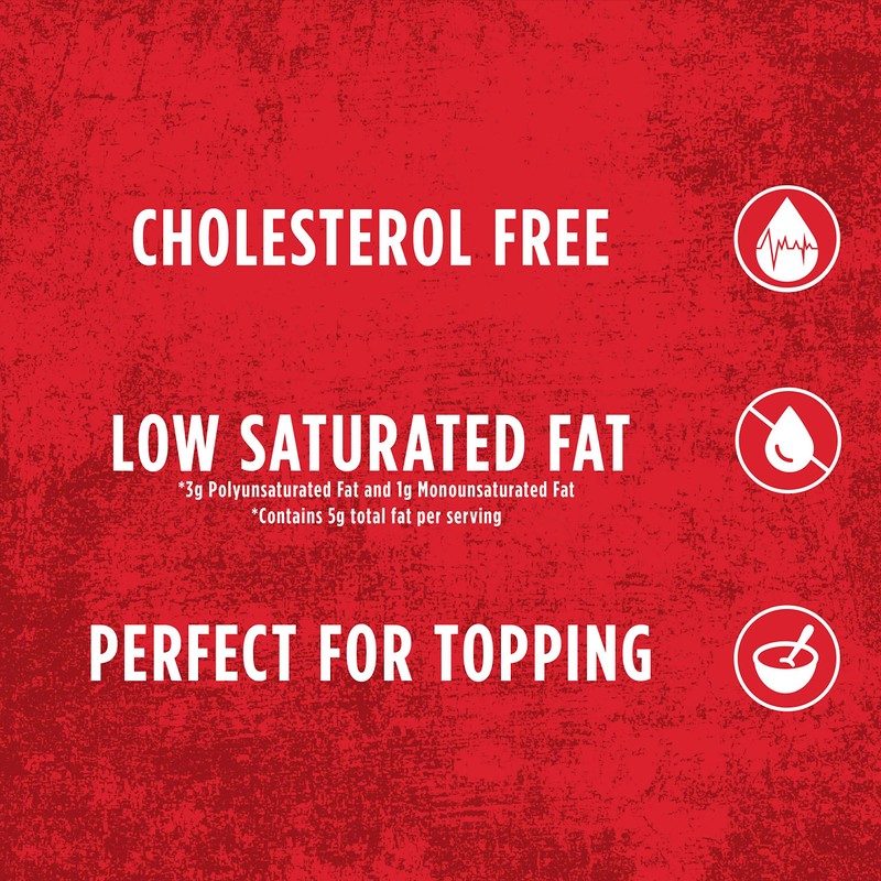 - Cholesterol free (2g polyunsaturated fat, 0.5g monounsaturated fat); Low in saturated fat (5g total fat per serving); Kosher Dairy