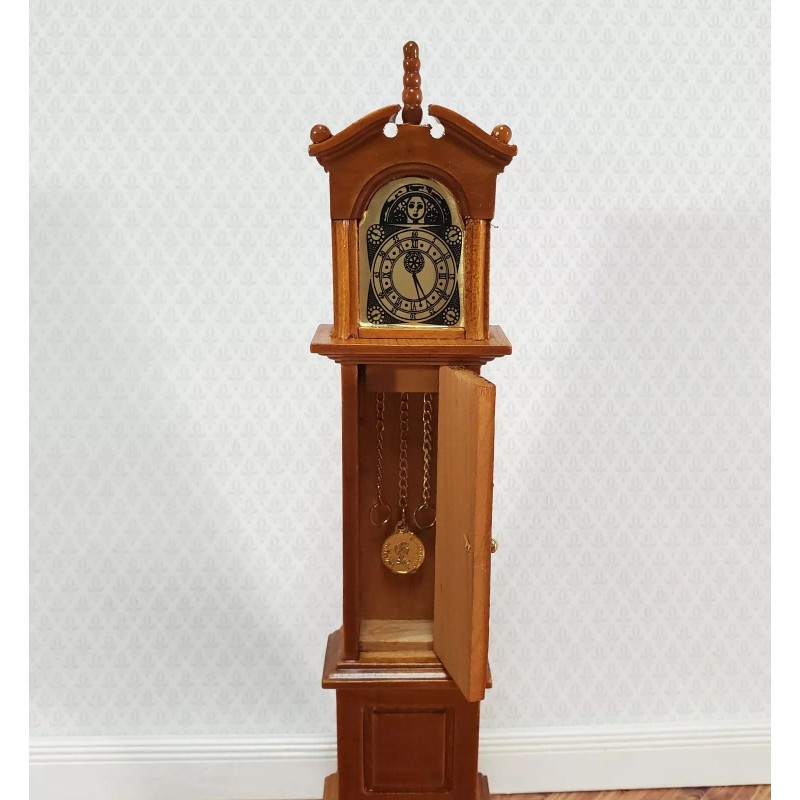 Town Square Miniatures Dollhouse Grandfather Clock Opens Walnut Finish 1:12 Scale Miniature Furniture