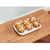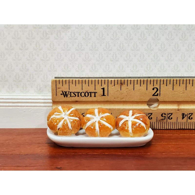 Town Square Miniatures Dollhouse Hot Cross Buns on a White Ceramic Platter 1:12 Scale Miniature Kitchen