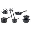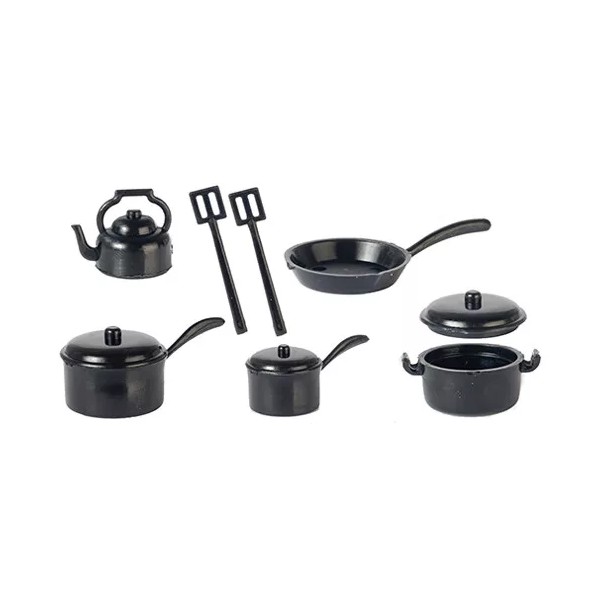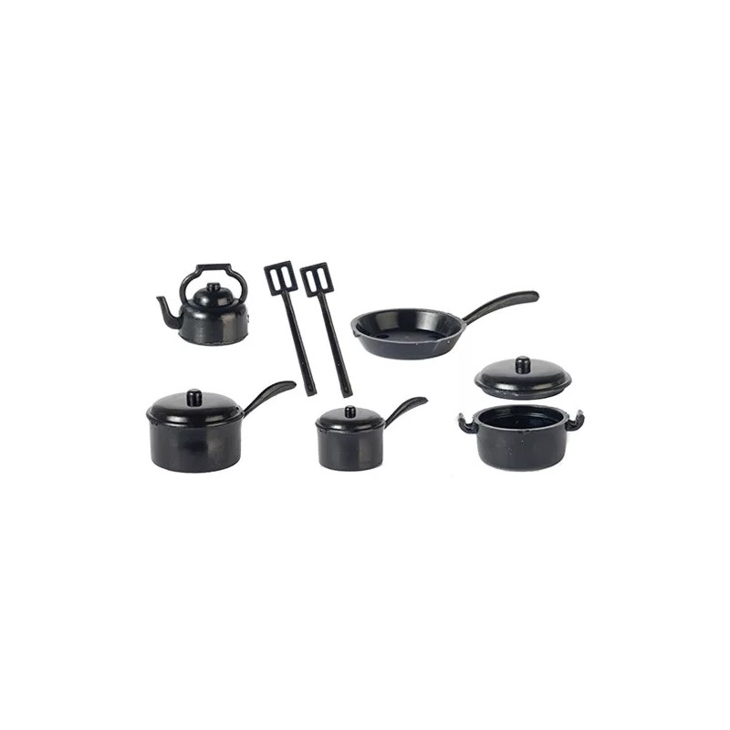 Town Square Miniatures Miniature Dollhouse 10 Piece Black Pots Pans Accessories 1:12 Scale New