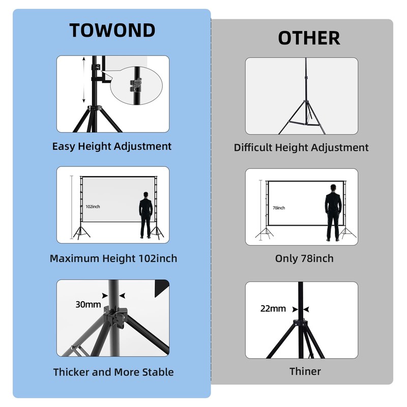 TOWOND Projector Screen and Stand,Towond 150 inch Indoor Outdoor Projection Screen, Portable 16:9 4K HD Rear Front Movie Screen with Carry Bag Wrinkle-Free Design for Home Theater Backyard Cinema