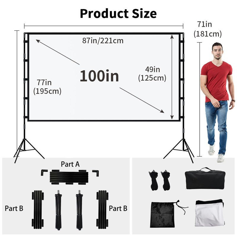 - Professional After-sales Service: The projector screen and stand come with all necessary tools (projection screen, tripod, carry bag, and other accessories) . We focus on your shopping experience. If you have any problem with our projector screen with tripod, please feel free to contact us and we will make every effort to solve it for you quickly.