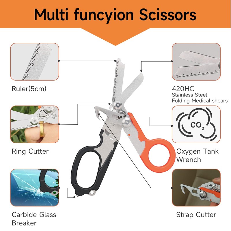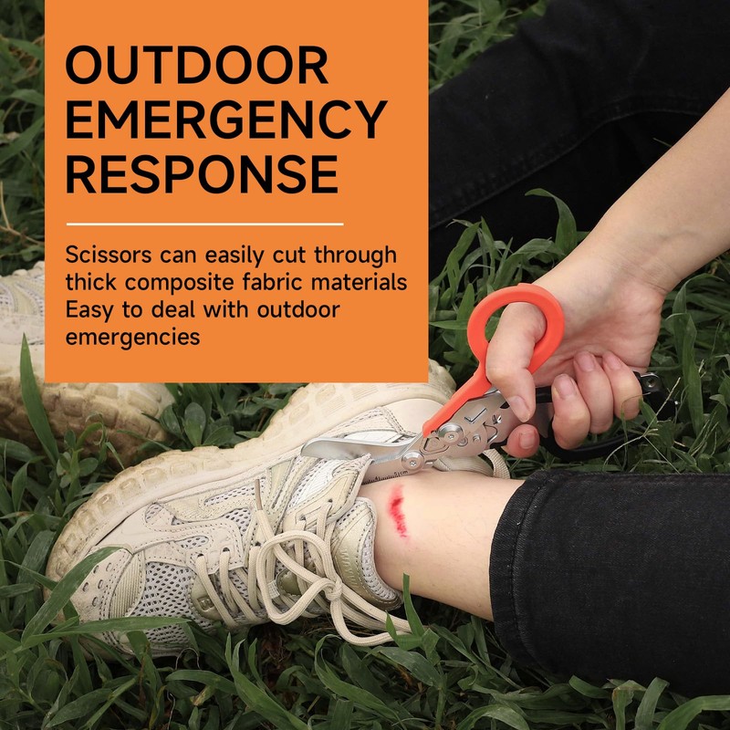 - Multi-Functional: The emergency response shears offer 6 essential tools, serving as foldable shears, strap cutters, ring cutters, rulers(5cm), oxygen tank wrenches, and carbide glass breakers.