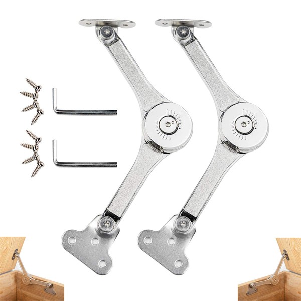 - ADJUSTABLE TENSION — Adjust the toy box hinges soft close tension with Allen wrench to fit for lids with different weight. After installing the lid hinges for wooden box, please tighten the mechanism into Allen wrench hole in the middle of the arms to set up appropriate pressure, prevent lid from slamming shut.