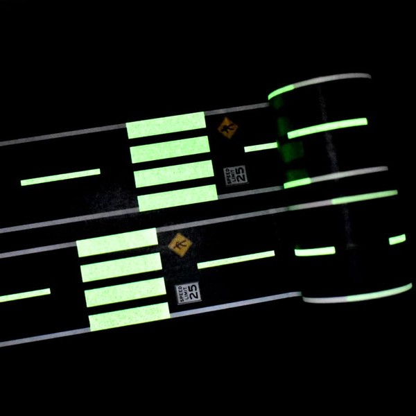 Toy Car Road Tape - Sticks to Flat Surfaces, No Residue; 30 ft. x 2 in. - Glowing Pedestrian Crossing, Black, Glow at Night