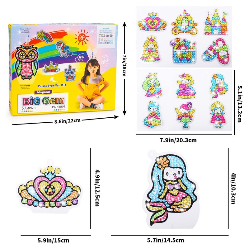 - 【3 in 1 Kids Diamond Painting】Package includes: 12 stickers, 2 sun catchers, 2 sun catcher stands, 1 diamond painting pen, 1 tray, 1 pen case, 1 wax square, 2 suction cup hooks, self-sealing bag and hundreds of colourful diamond gemstones. Children's diamond painting kits are very popular craft kits for children and also ideal craft toys for 4 5 6 7 8 girls boys.