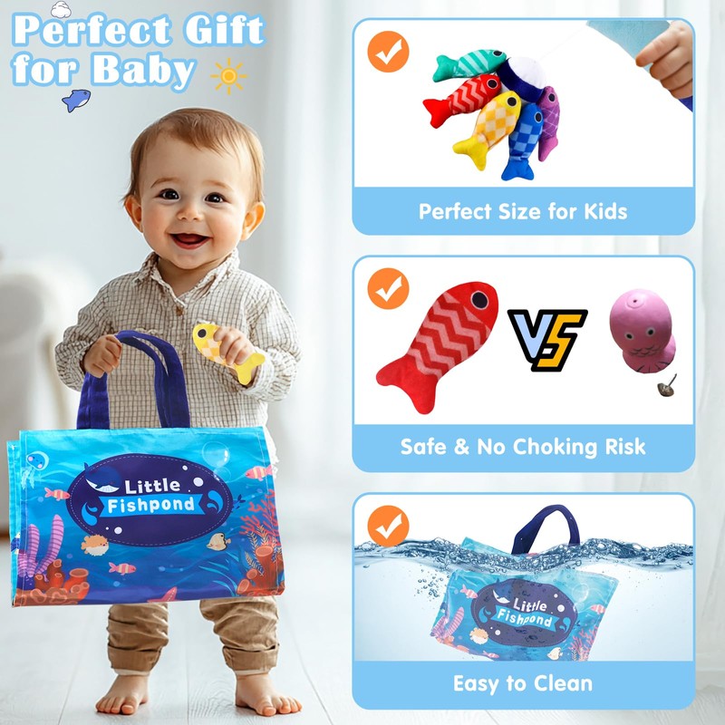 - Montessori toy for children 1 year: The Montessori baby toy contains 15 small fish, 5 stackable fish buckets, 1 fishing rod and 1 storage bag. It is a great learning toy for babies aged 6-12 months and 1 2 3 4 5 years