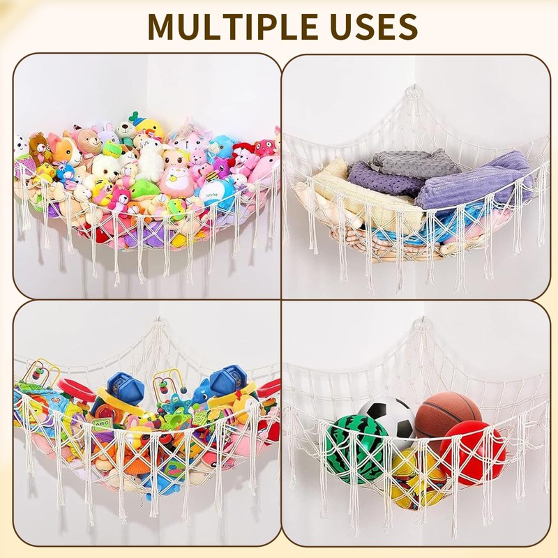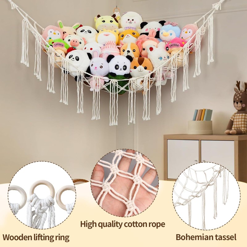 - HIGH QUALITY:The toy hammock stuffed is made of cotton rope, not easily deformed or not easy to tear, sturdy and safe, its elastic edge can easily hold toys of different sizes and types.