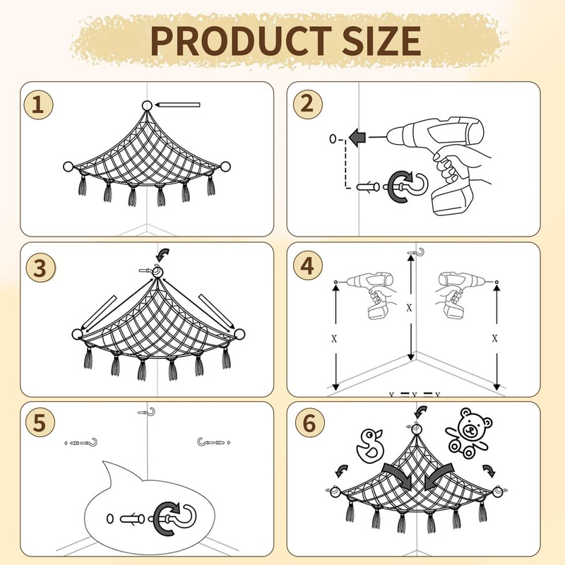 3.Das Spielzeug-Hängematten-Paket enthält 3 Anker und Haken, einfach zu installieren ohne zusätzliches Zubehör