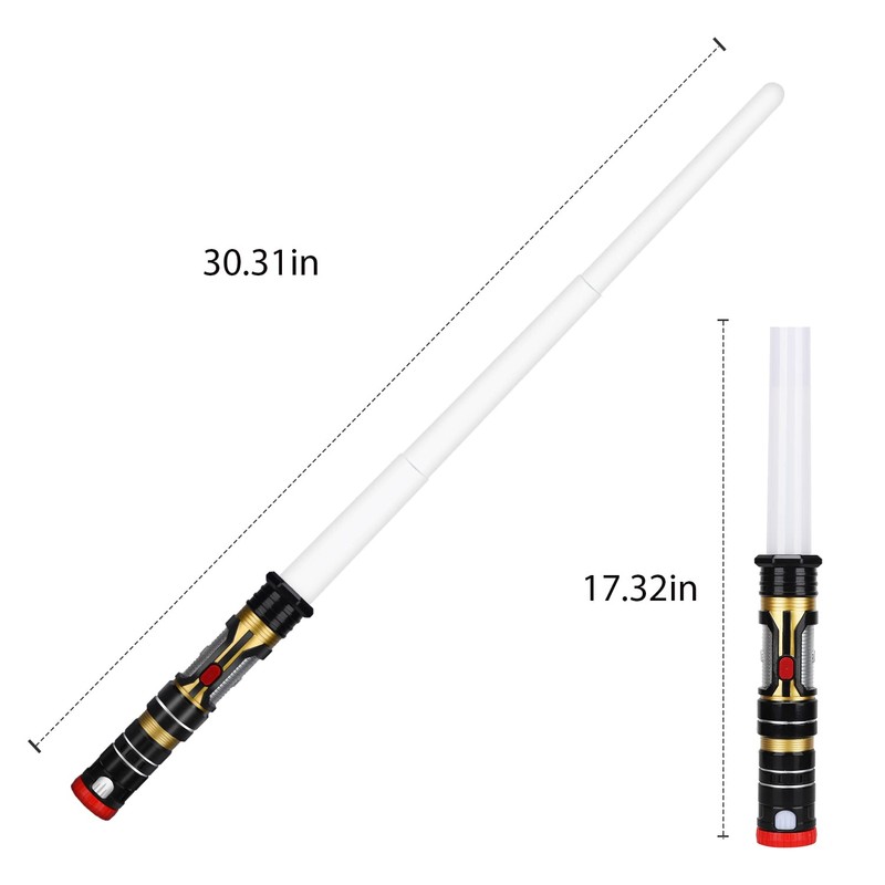 - - FROM A GALAXY FAR AWAY... Well, not really. But these 31” light up sabers sure look like they’re from outer space. Hold up the thickened telescopic handle and switch on the LED blade, and you’re the star of the war.