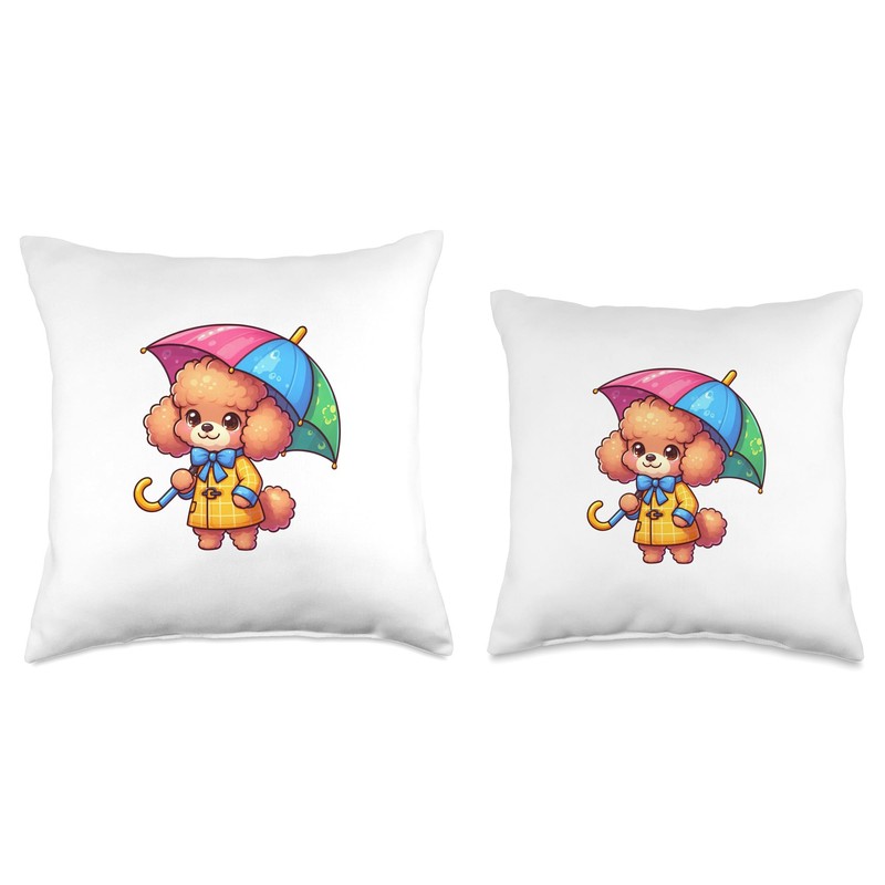 - Check out this funny Toy Poodle Umbrella design featuring an illustration of a cute Poodle dog holding an umbrella and wearing a raincoat.