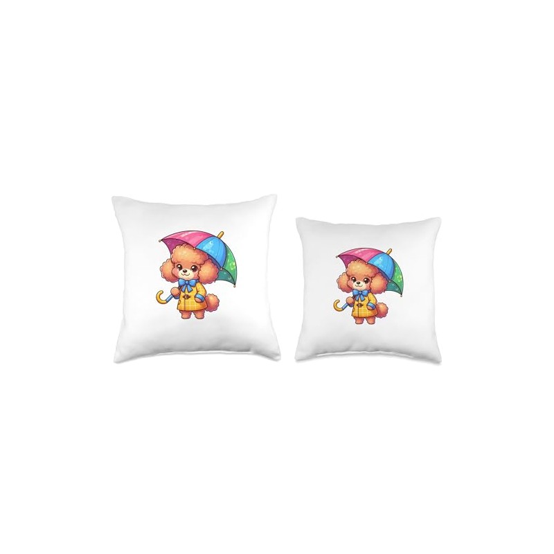 Toy Poodle Umbrella Dog Funny Raincoat Throw Pillow