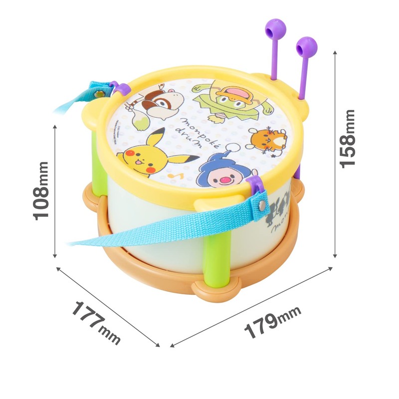 • (First Musical Instrument Play In Monpok) From Monpoke, a baby drum with cute depicting Pokémon Pikachu, Dedenne, and Dobble. A fashionable drum with a silhouette art on the sides of the drum