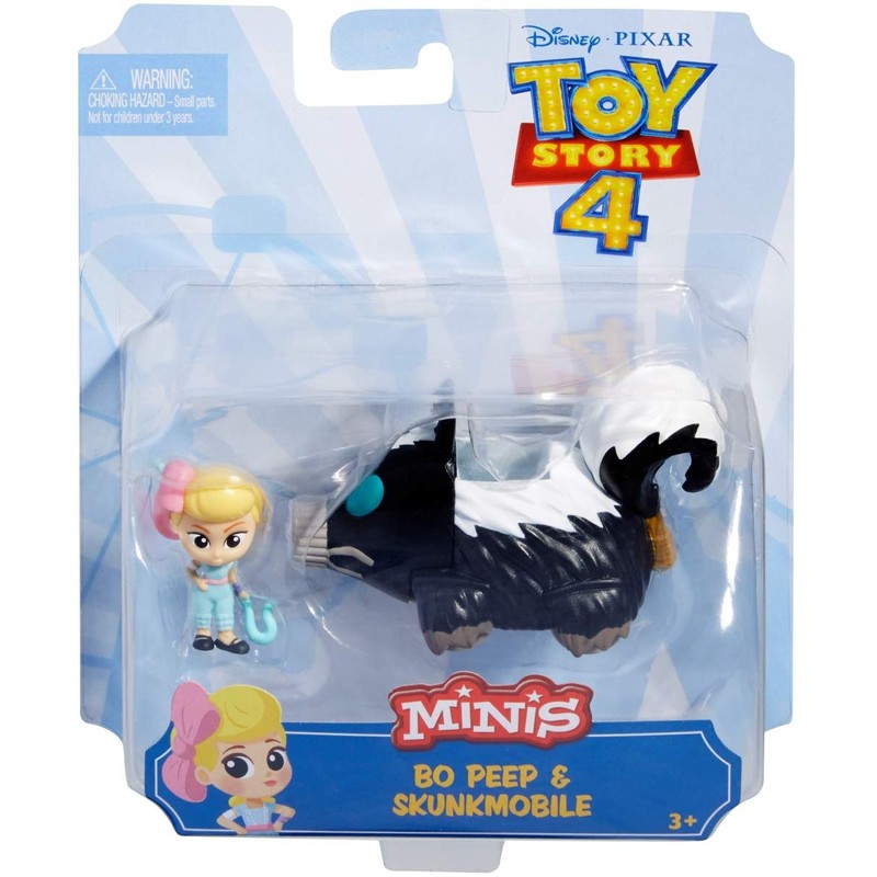 - Mini figures and vehicles from Toy Story 4 with typical designs and facial expressions