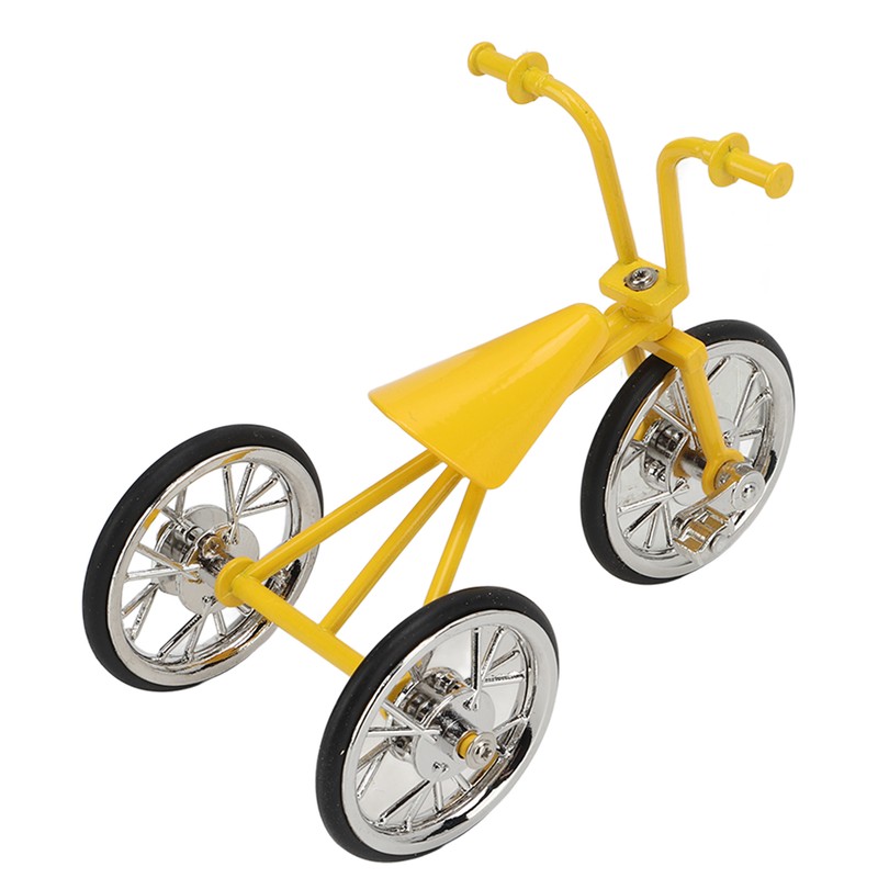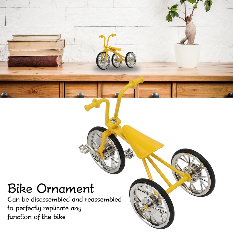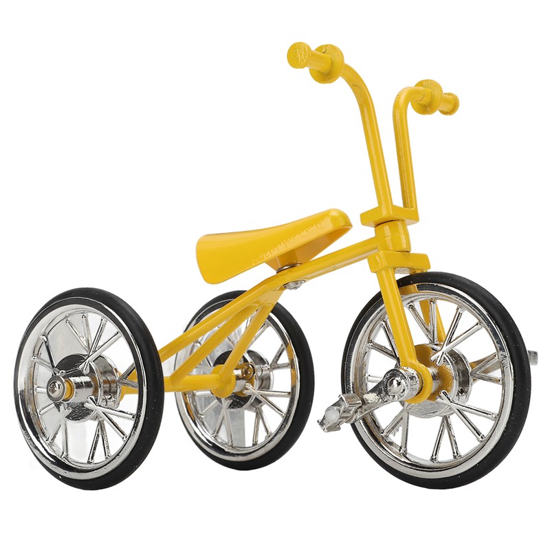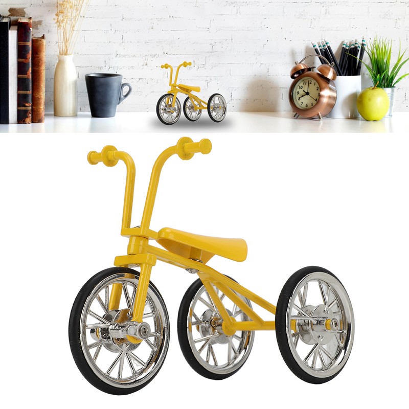 Toy Tricycle Model 3D Car Model Removable Tricycle Ornament Metal Rubber Bike Ornament for Any Age for Birthday Yellow