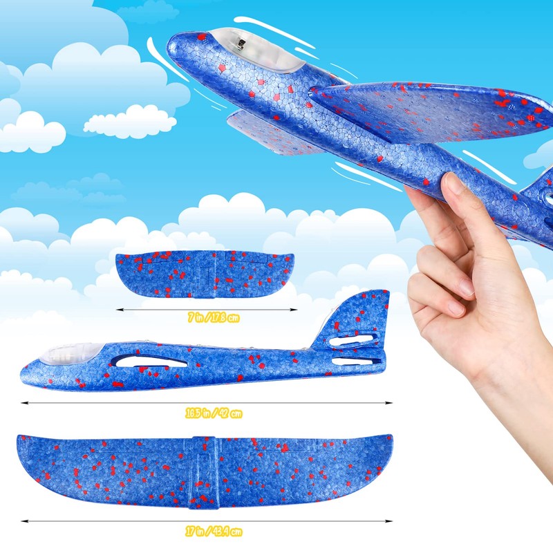 2 Pack Foam Airplane Toys, Large Throwing Foam Plane, LED Light Flight Mode Glider Plane, Flashing Glider Plane, Flying Toys for Kids, Outdoor Toy Birthday Party Favors