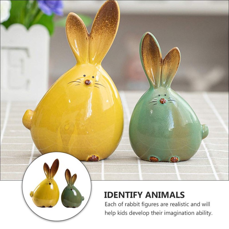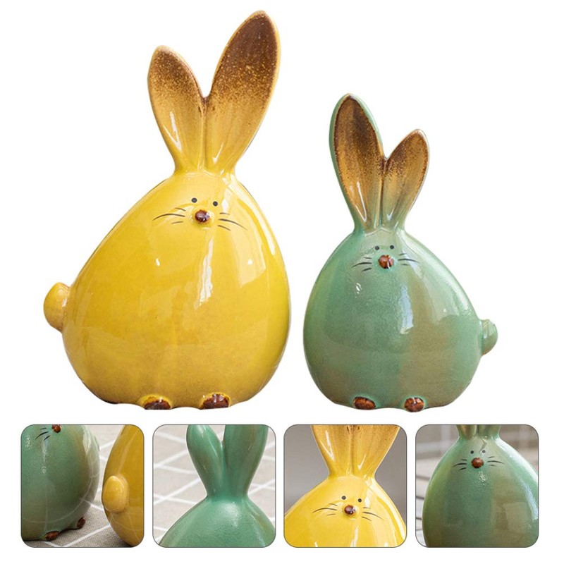 TOYANDONA 2pcs Easter Bunny Rabbit Figurines Ceramic Rabbit Statues Car Interior Figures for Easter Party Table Decoration